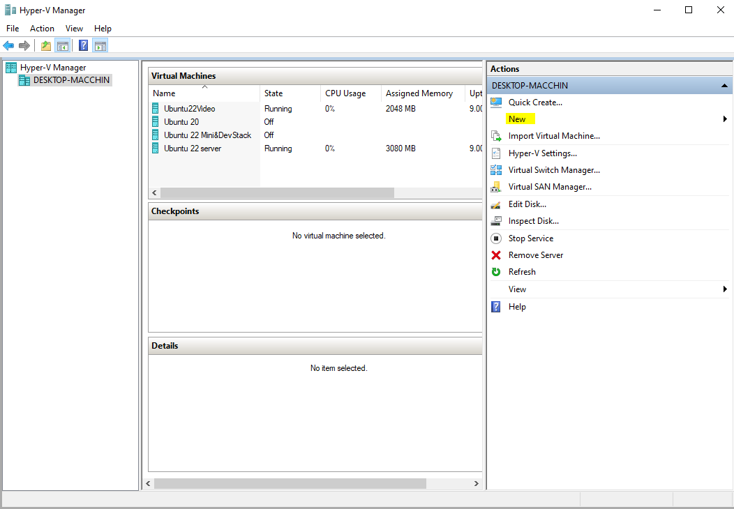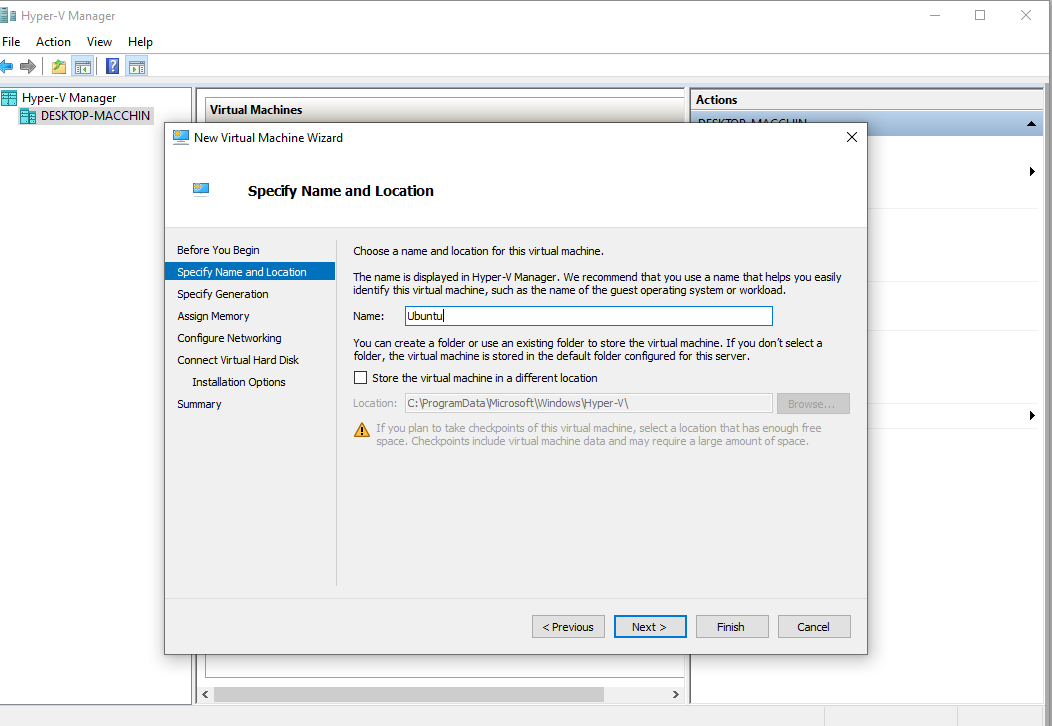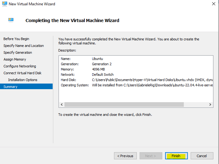 A questo punto possiamo andare su Hyper-V, dopo aver scaricato l’immagine di sopra e possiamo creare la macchina virtuale.