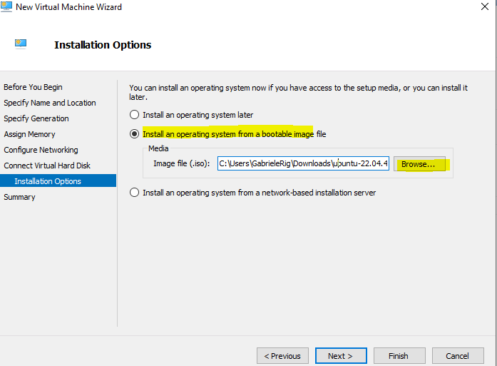 Selezioniamo il sistema operativo scaricato precedentemente, Ubuntu 22.04 Server