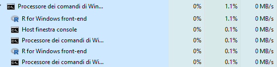 il consumo, su RAM (seconda colonna), si abbassa in quanto non si passa da Rstudio.