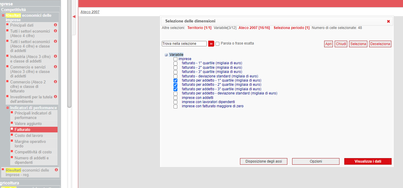 Se cerchi su google o maps.google.com la descrizione della tua azienda in massimo 5 parole, troverai aziende molto più vicine a te in termini di mansioni. Aprendo il loro sito web, se lo hanno, potrai confermare questa cosa. A quel punto puoi utilizzare la loro PIVA per automatizzare l’estrazione di alcuni loro dati, come quelli citati sopra. Altro dato quantitativo: dal sito Ufficio Camerale, se inserisci la PIVA di un concorrente, puoi vedere il numero di dipendenti. Se dividi il suo fatturato per il numero di dipendenti, ottieni un indicatore interessante, che a questo punto puoi confrontare con ciò che trovi su dati.istat.it, andando su Risultati economici delle imprese -> Indicatori di performance-> Fatturato ->  cliccando su variabili nella tabella, selezionando su “fatturato aggiunto per addetto 2° quartile” (o mediana)